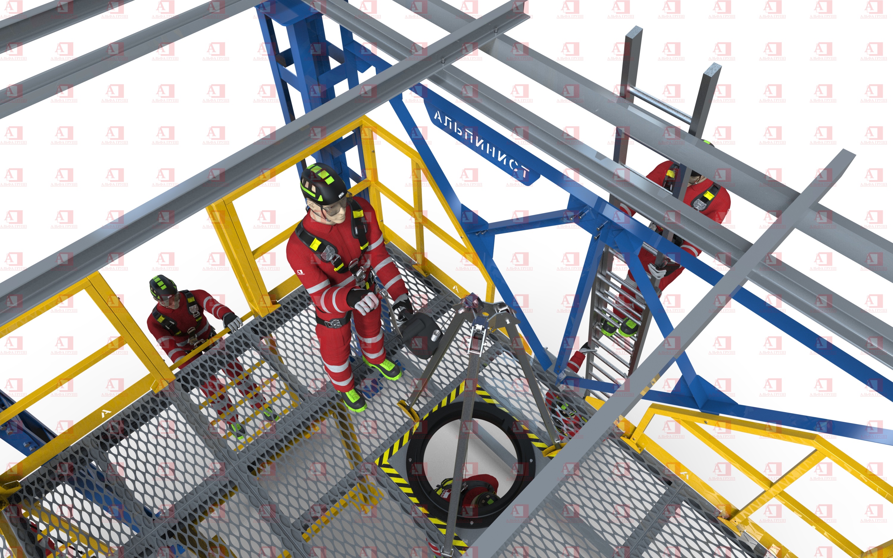 •  Подъём по металлоконструкции с применением вертикальной гибкой анкерной линии;
