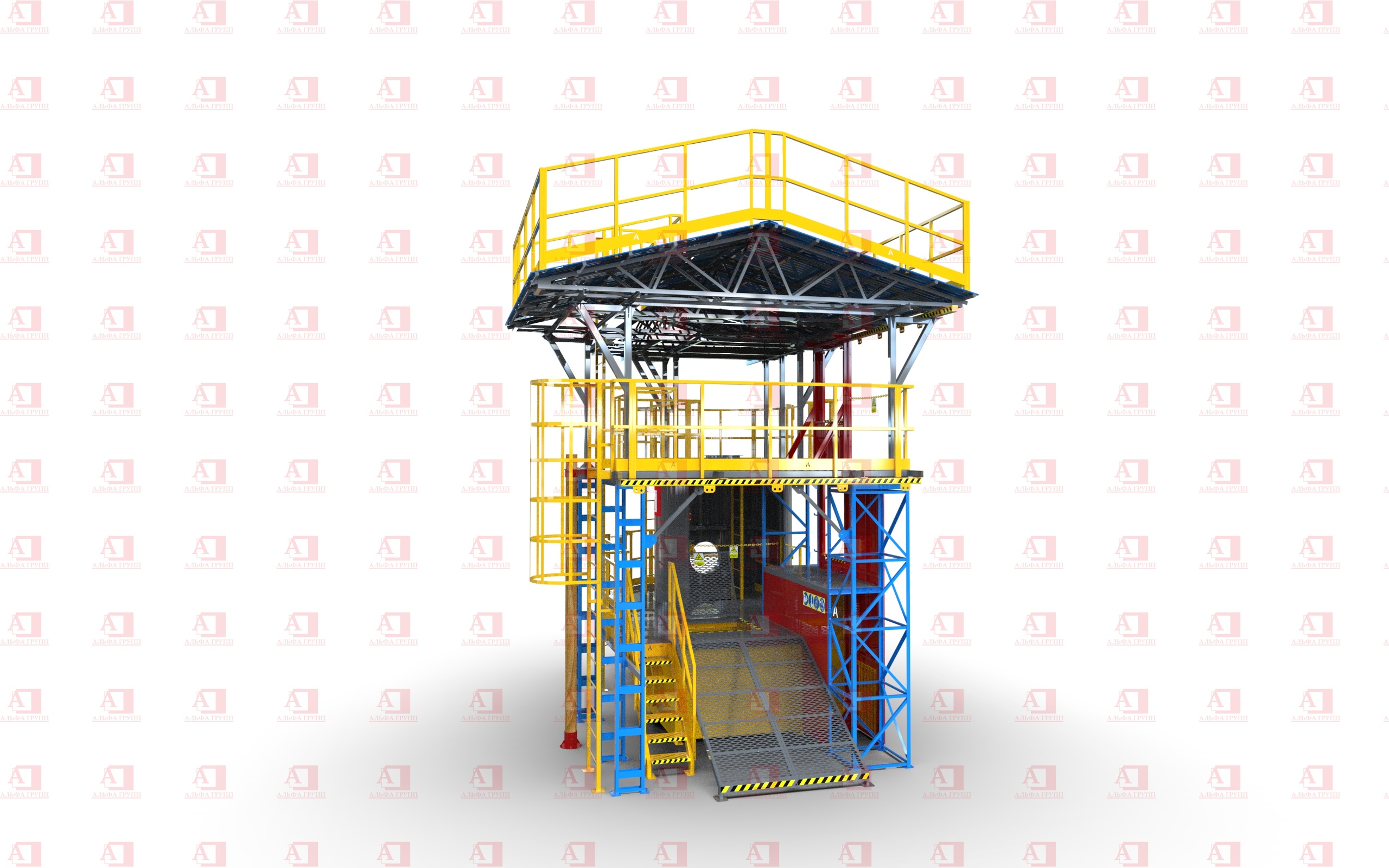 Доступ на рабочую площадку второго уровня осуществляется по стальной маршевой лестнице.